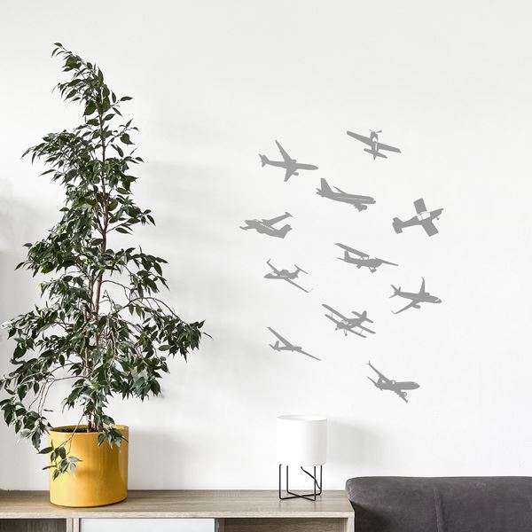 Set 11 kusů samolepek. A319, A320, A330, AN-2, B-737, BizJet, Blaník, C-172, EXTRA-300, L-410, Zlín-142. Obrysová samolepka (nejen) na auto umístěna na přenosce.Barva:šedá