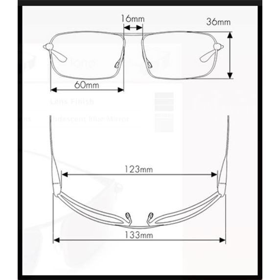 Barva rámu je přírodní titan a čočky jsou zakončeny duhovým modrým zrcadlem.