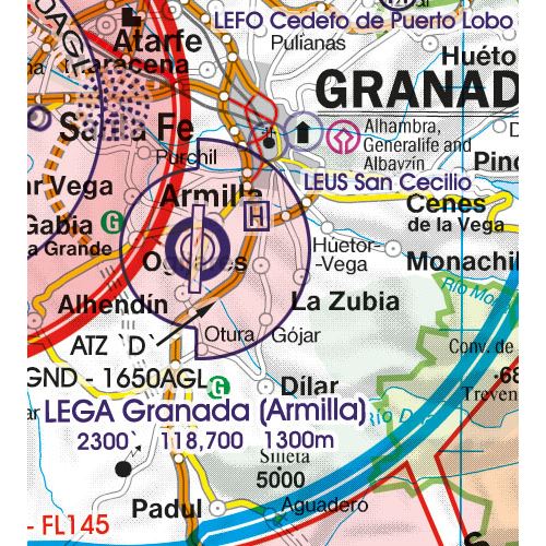 Letecká VFR mapa jihovýchodní Španělsko – ICAO mapa v měřítku 1:500 000Vč. oblastí: Ibiza a Kanárské ostrovy